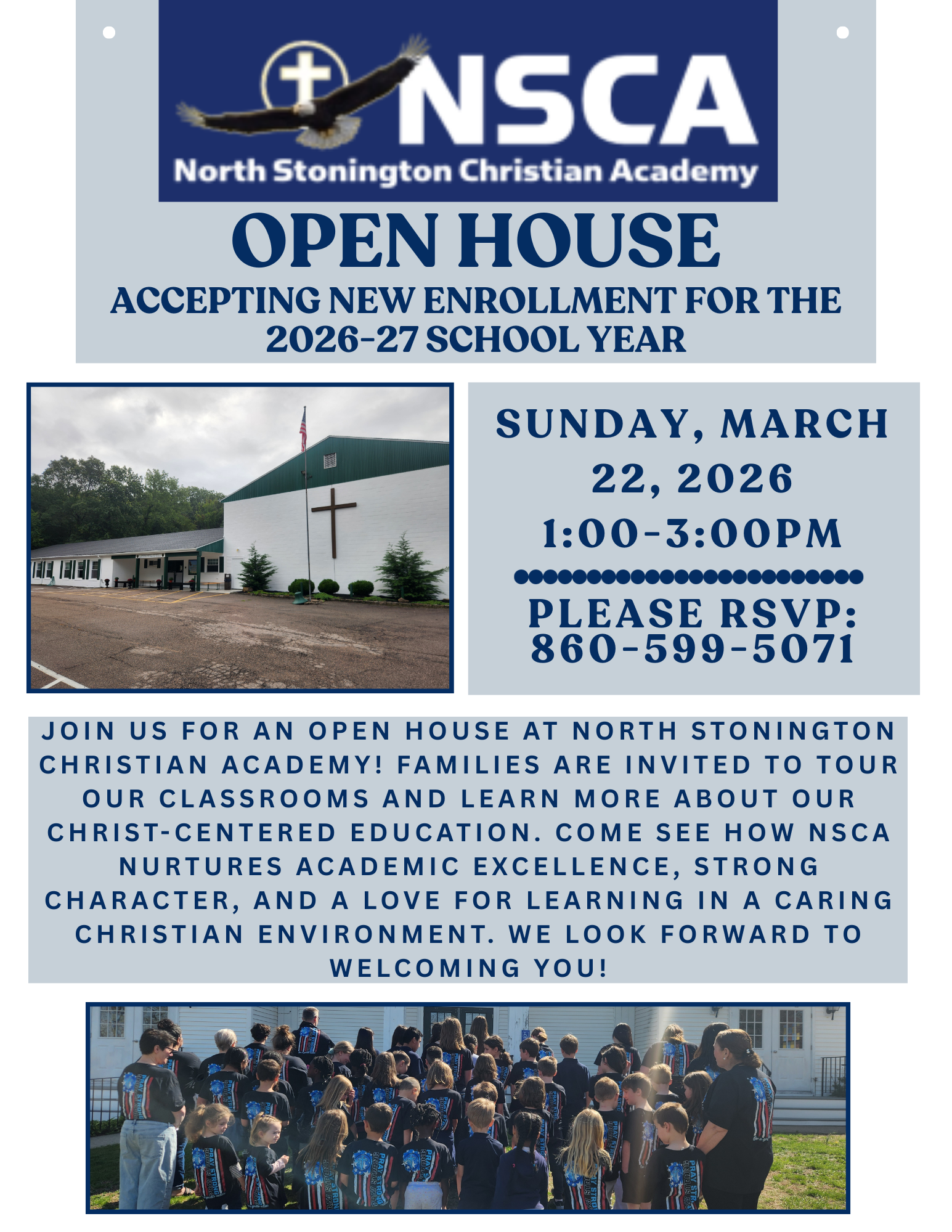 In order to meet our goals for excellence, North Stonington Christian Academy primarily utilizes the ABeka Curriculum, complemented with materials from other Christian publishers including Association of Christian Schools International, to provide a balanced and integrated approach to education. The curriculum includes the following subjects: Bible, Mathematics, Science, Language Arts, History and Geography, Spanish, French, Latin, Art, Music, Physical Education, Health, Speech and Drama, Home Economics, Community Service, and Technology.